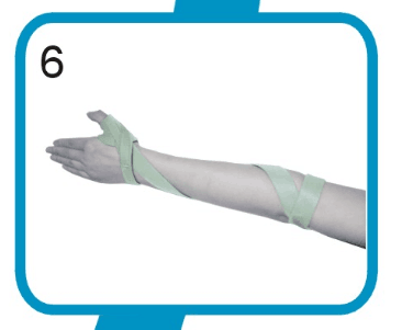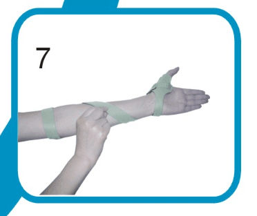 步驟二將旋后帶從拇指側(cè)向小指側(cè)開始纏繞,繞前臂第1周,第二周繞過肘部,在肘部后方交叉處用尼龍搭扣粘住。